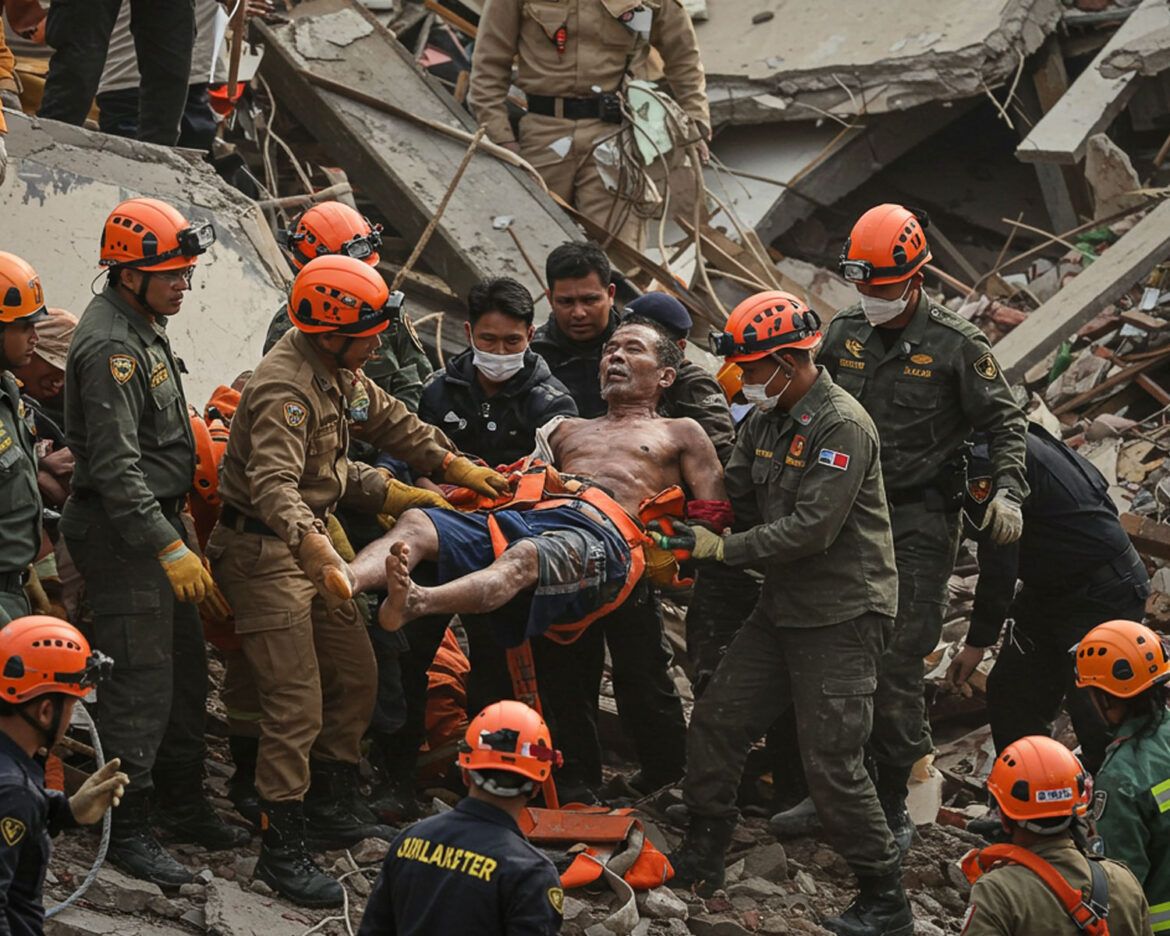 Yangon, Myanmar – In a remarkable and heart-wrenching rescue operation, a 53-year-old man was saved after being trapped for over five days under the debris of a collapsed hotel in Myanmar. The collapse occurred in the early hours of the morning last Monday, following a severe earthquake that struck the region.