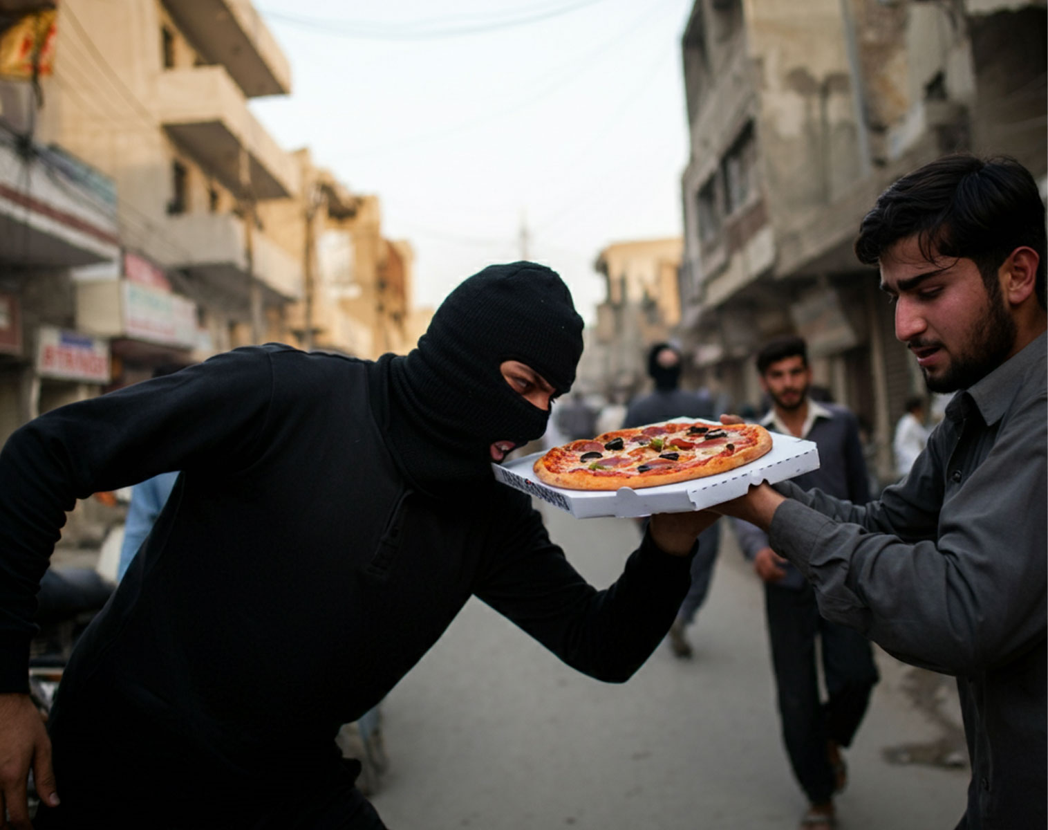 The assailants, who fled the scene on a motorbike with the stolen pizzas, remain unidentified, and a case has been filed against them. This incident highlights a troubling trend, as police noted a similar robbery recently in Sufyan Town, where pizzas valued at Rs1,800 were taken in a similar manner.