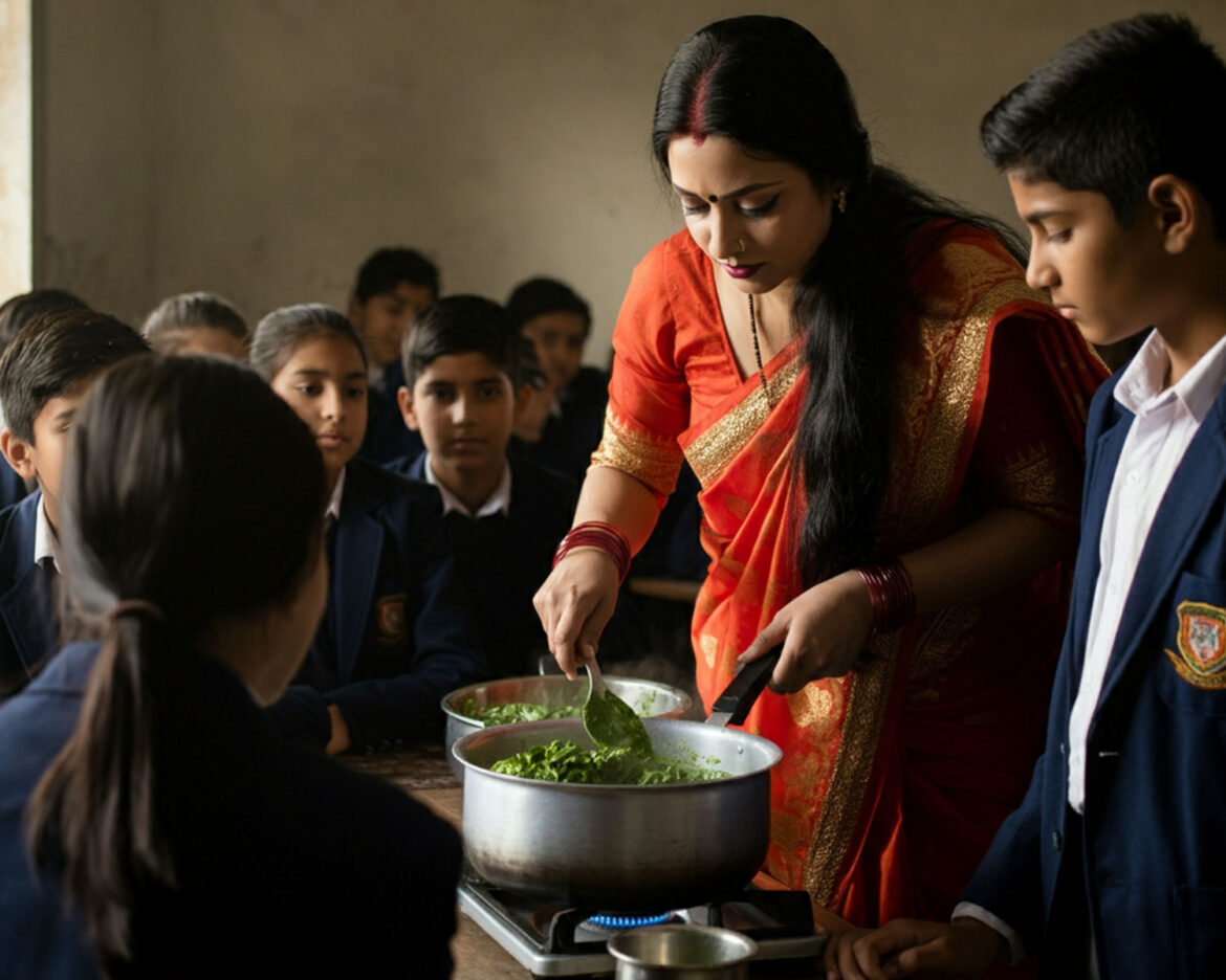 In an unusual turn of events, several female teachers at a government school in [City Name] have been suspended after being caught cooking saag (a traditional leafy vegetable dish) during school hours. The incident came to light when an anonymous tip led school authorities to investigate reports of non-academic activities taking place during instructional time.