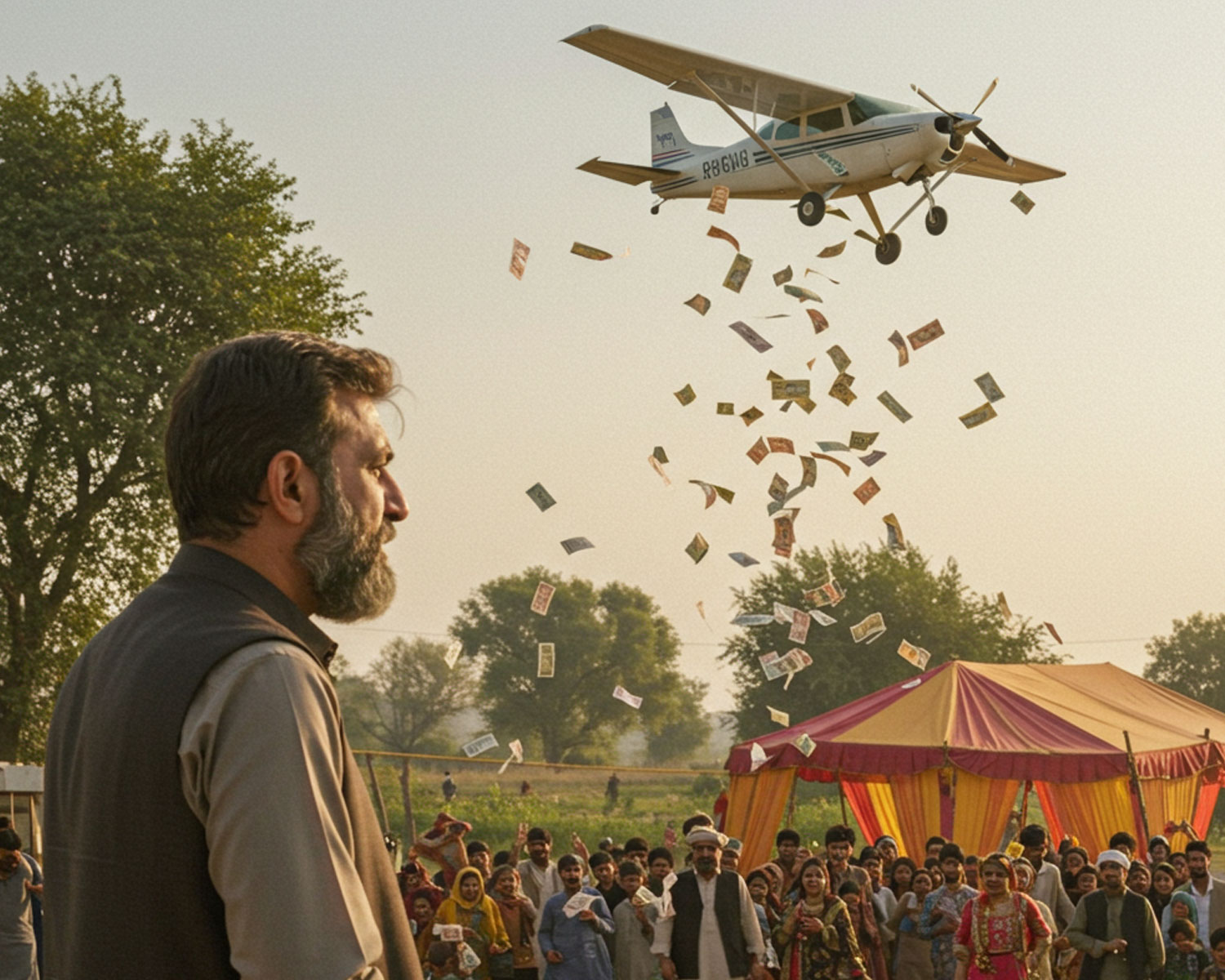 In a display of unparalleled opulence, a man in Hyderabad made his son’s wedding day even more unforgettable by renting a private plane to drop cash over the venue. The event, which took place at a high-end wedding hall, left the guests in awe as the plane circled overhead, releasing bundles of currency into the air.