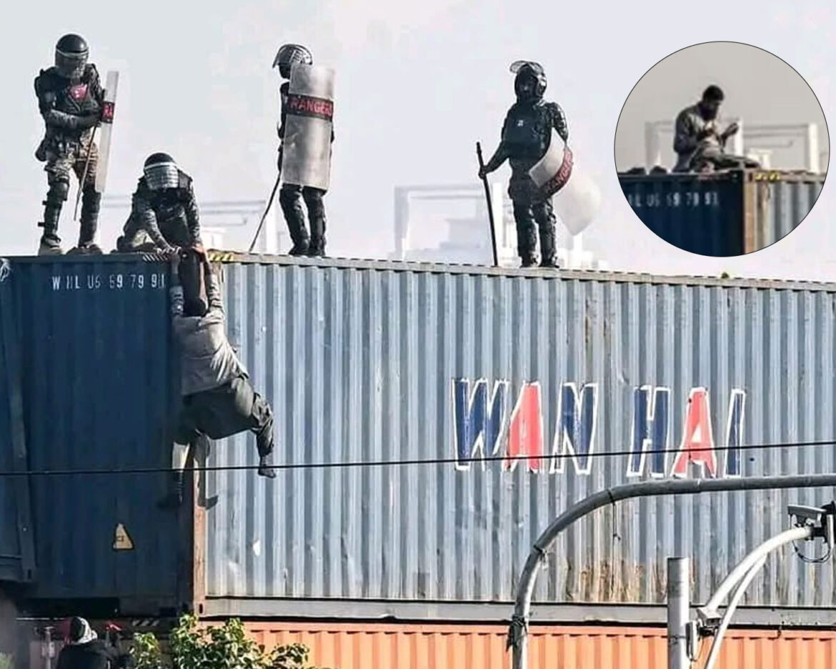 Home National PTI Protester Praying on Container Pushed Off by Rangers; Picture Goes Viral