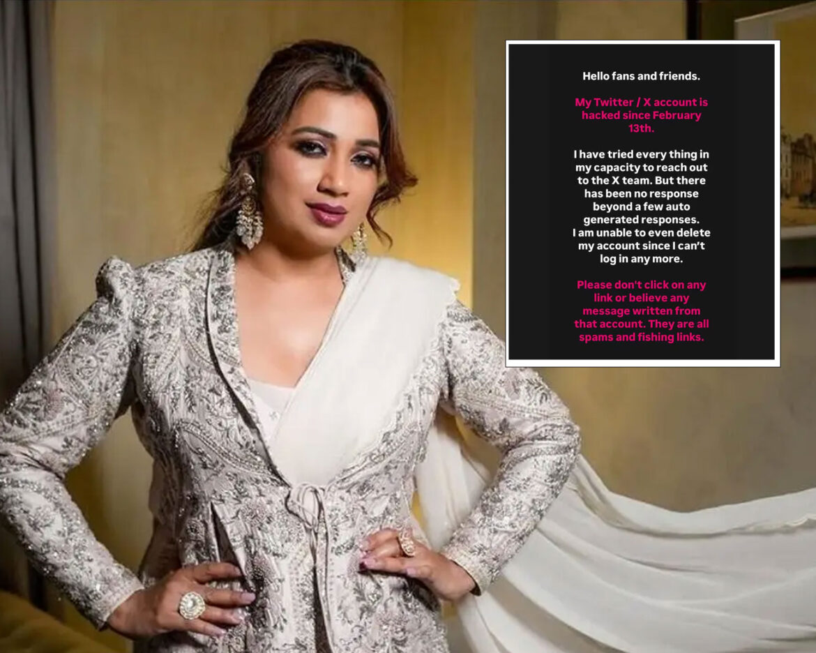 Mumbai – Bollywood’s renowned playback singer Shreya Ghoshal’s official X (formerly Twitter) account has reportedly been hacked, causing concern among her fans. The unauthorized access was noticed after suspicious activity and unusual posts appeared on her profile.